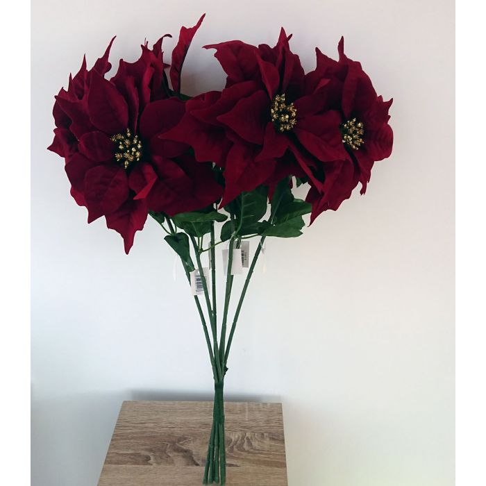 6 X Artificial Poinsettia Stems Permabloom
